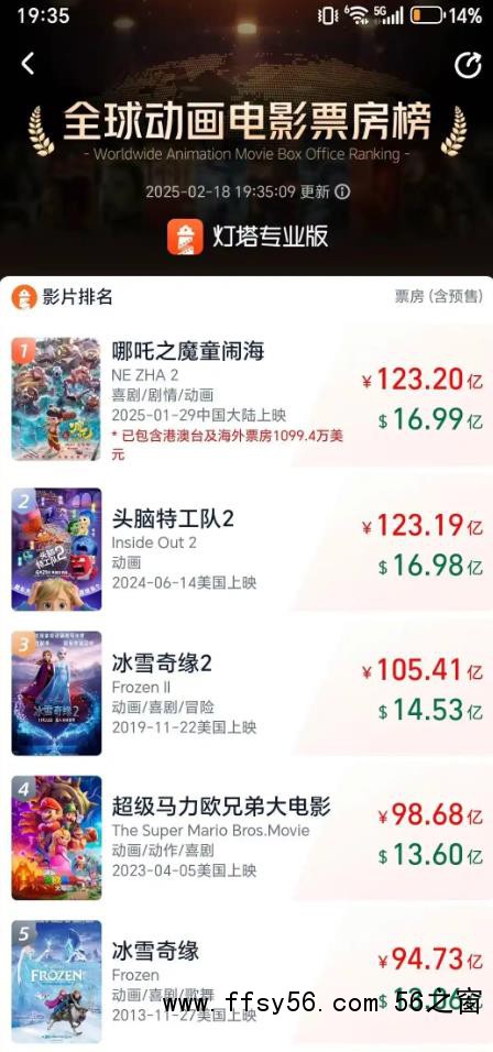 《哪吒2》成全球动画电影票房榜第1