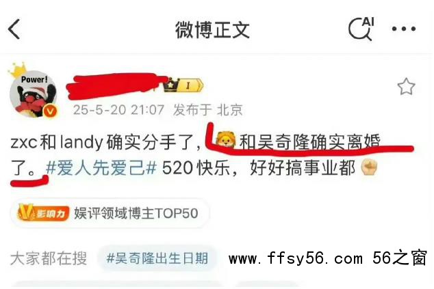 事情起因是刘诗诗和吴奇隆在520这天没有任何互动,这让网友们开始怀疑两人的婚姻状况。毕竟,在这个充满爱的日子里,连空气都在撒糖,他们却毫无动静,确实容易让人浮想联翩。再加上刘诗诗的微博里搜不到吴奇隆的相关内容,吴奇隆在爆料后也未上线回应,这更是让离婚传闻“板上钉钉”。有网友调侃道:“这操作,怕不是要上《再见爱人》的节奏啊!”