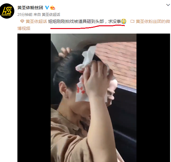 从粉丝曝光的视频可以看到黄圣依手里拿着几张纸巾,用手捂着头,虽然没有看到伤口,但纸巾上满是血,黄圣依另一只手还揪着头发,看起来似乎很不舒服。