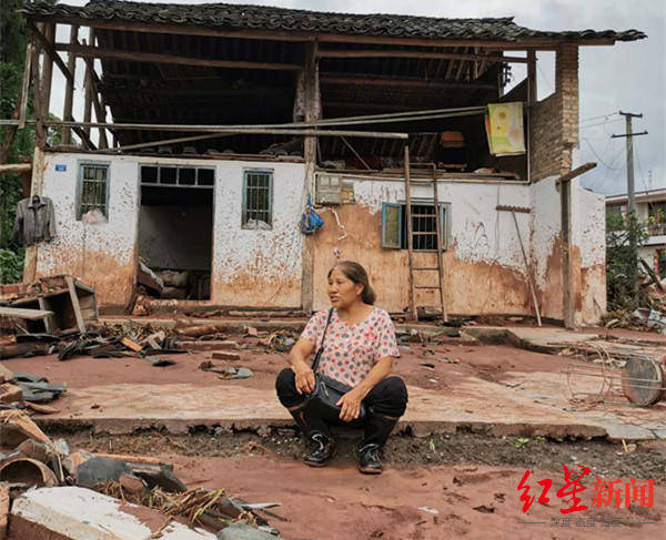 家里什么东西都没有拿出来,本就不结实的木房子,在洪水的冲击下,也垮塌了大部分。“我好后悔哦,当时屋子里进了水,我就该带着他们到更高的(房顶)上去嘛,还舀啥子水哦。”李本兰说,“我宁愿被冲走的是我啊。”