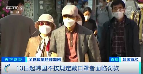 财经频道特约记者杨旭珲:这里是首尔市内的弘大商圈,这里聚集着很多餐饮、购物等设施,出来逛街的人基本都佩戴着口罩。从昨天起,如果不按规定戴口罩的话就要被罚款,戴口罩的规定很严格,首先在餐厅、超市、电影院等公共场所的室内要戴,在人员密集的室外也要戴。其次对口罩的功能也有要求,必须能够有效阻挡飞沫。最后人们佩戴口罩的方式要规范,要能遮住口鼻。如果违反规定,个人将被处于最高10万韩元、约合590元人民币的罚款,没有管好顾客的商家也会被罚款。