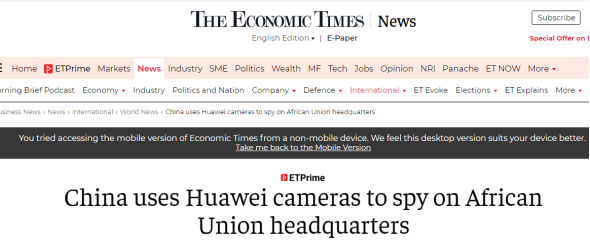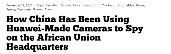 这并非外媒首次炒作“中国利用华为窃取非盟数据”。2018年以来,西方媒体多次炒作“中国监听非盟总部”一事。2019年,美国政府首席技术官克拉齐奥斯更是在一场网络峰会上公然宣称中国政府5年来一直利用华为电信设备窃取非盟数据。