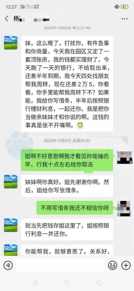 不久后,高先生接二连三的收到班主任杨某的借款信息,从买房、装修到孩子留学,每次都以不同的理由借款,金额也从最初的5万到8万、再到20万。