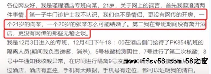 据媒体消息,近日,网传陕西确诊病例向某和一护士开房,并和另一确诊者是情侣。12月23日,当事人发文澄清,表示网传信息纯属造谣。