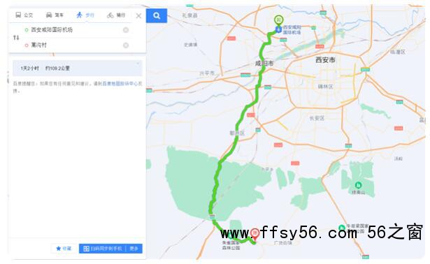查询地图显示,从西安咸阳机场到宁陕县广货街镇蒿沟村,步行最短距离也要大约110公里,这名男子走了足足9天。