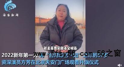 据报道,2022年新年第一天,有“台湾综艺一姐”之称的67岁资深演员方芳在北京天安门广场观看升旗仪式,并称“大家元旦快乐!回家的感觉真好!”视频画面中,方芳眼含热泪谈看完升旗仪式的感受,称自己的父亲终其一生就是希望能够有一天带她回家,而现在,她已经完成了父亲母亲的心愿,回到了祖国母亲的怀抱。