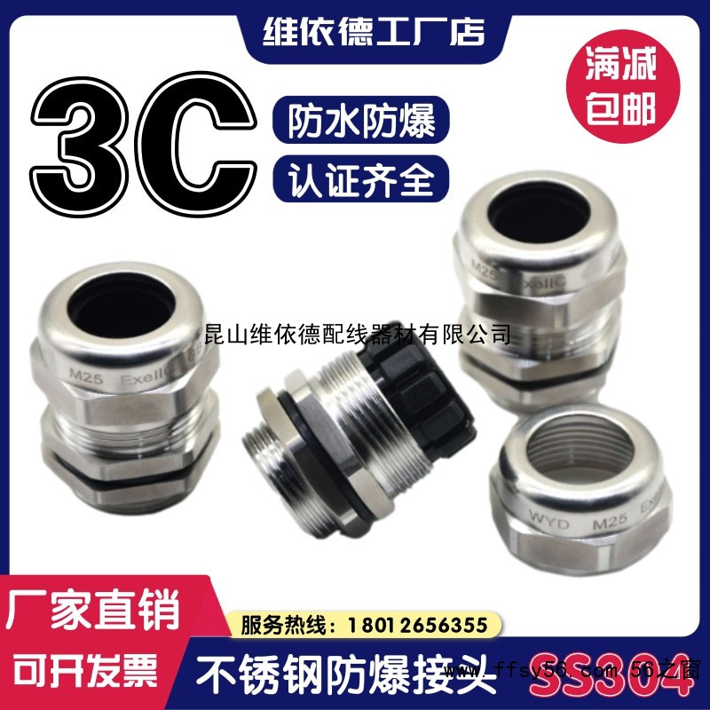 不锈钢防爆接头,是昆山维依德WISDOM品牌旗下主打产品之一,本产品采用304不锈钢精致而成,具有独特的防爆功能,隔爆等级EX DII BT4,产品认证齐全,防护等级IP68。我们的不锈钢防爆接头型号齐全,从M6-M90,PG7-PG48,NPT1/4-NPT4,G1/4-G4的,总有一款是适合您的,为了消除广大客户采购前的忧虑,我司特免费提供样品,让您在确认样品之后在进行采购,而且现在不锈钢防爆接头我司全部采用批发价格销售,欢迎咨询订购。