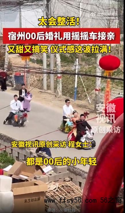 近日,安徽宿州的一场接亲仪式在网络上迅速走红,赢得了数万网友的点赞。这场婚礼的新郎没有选择常见的豪车车队或传统花轿,而是骑着玩具摇摇车将新娘接回了家。